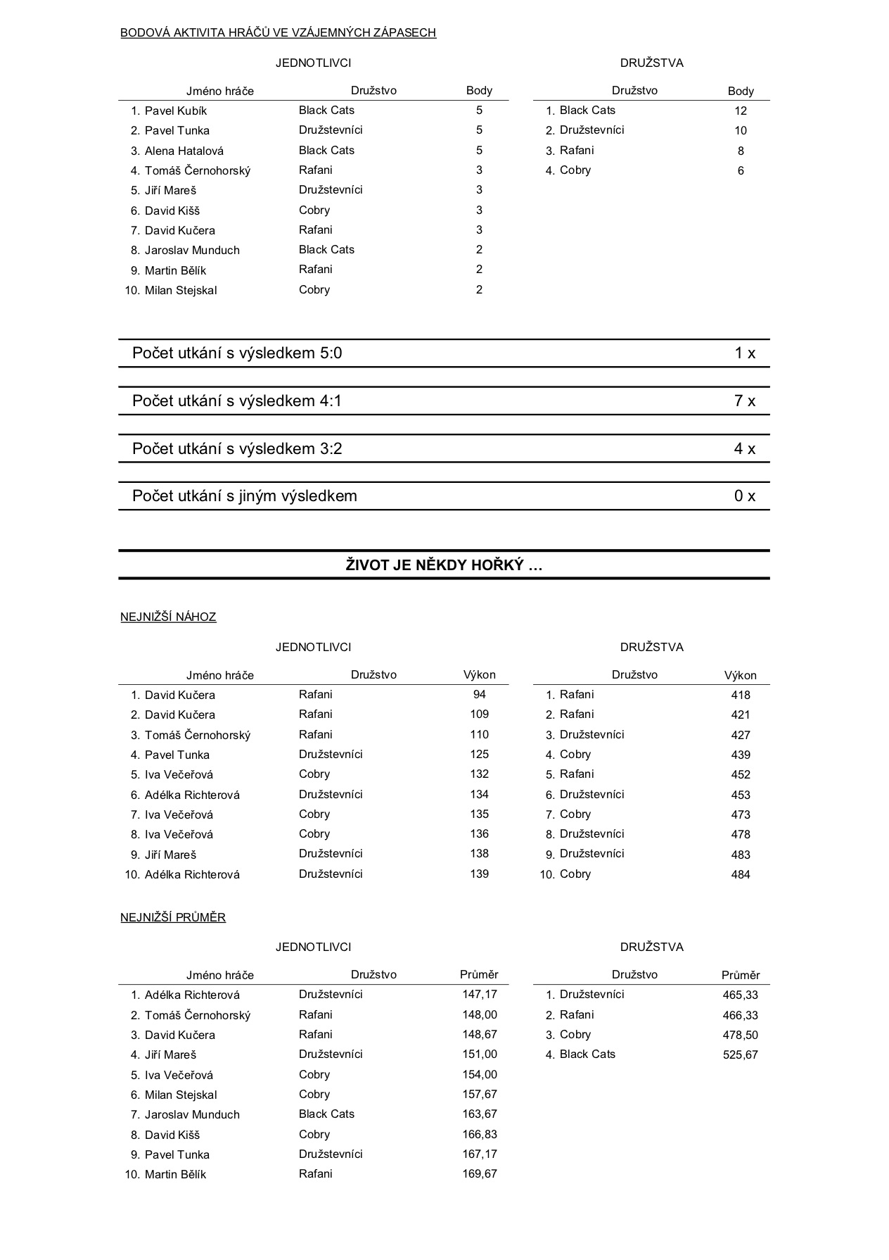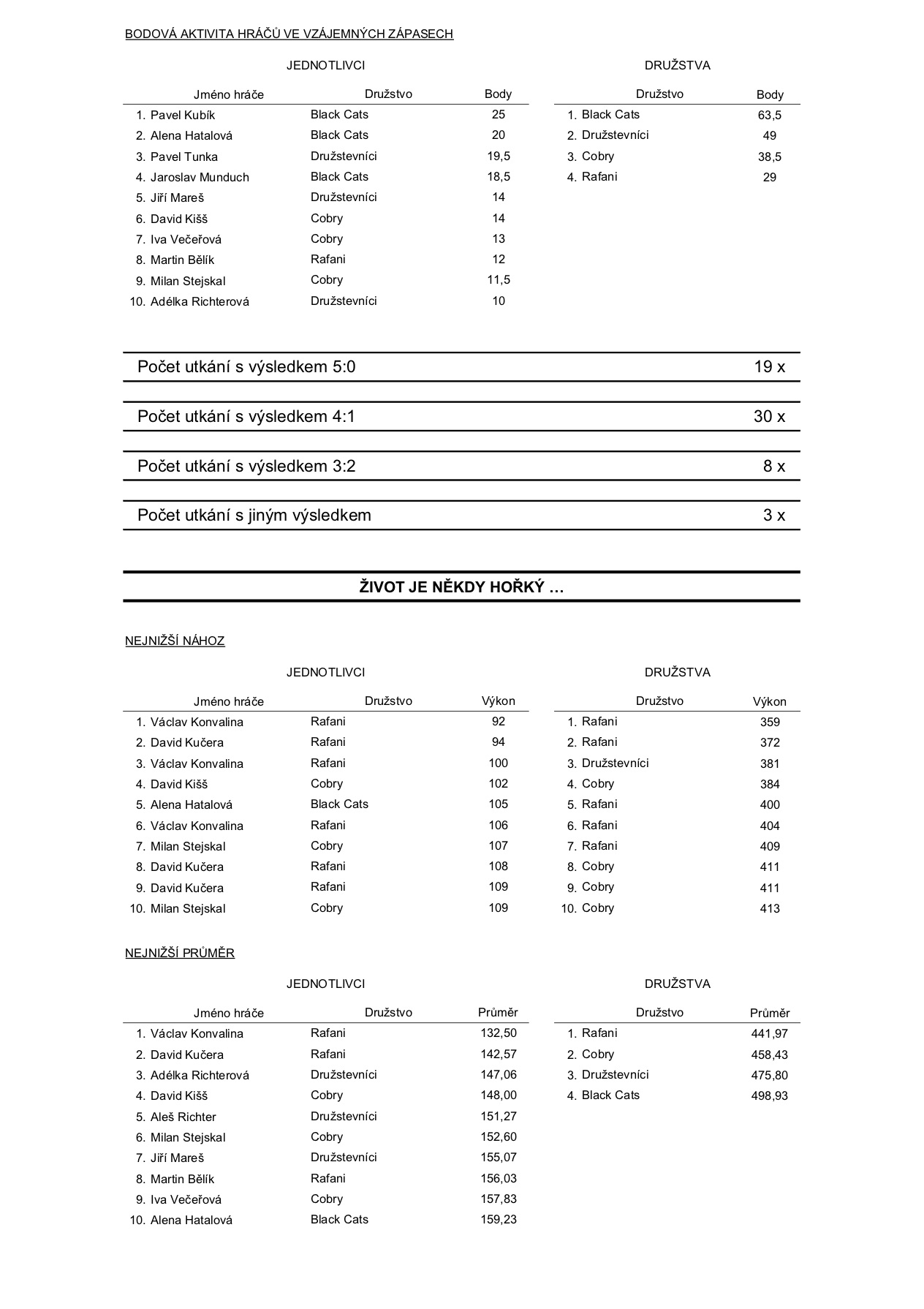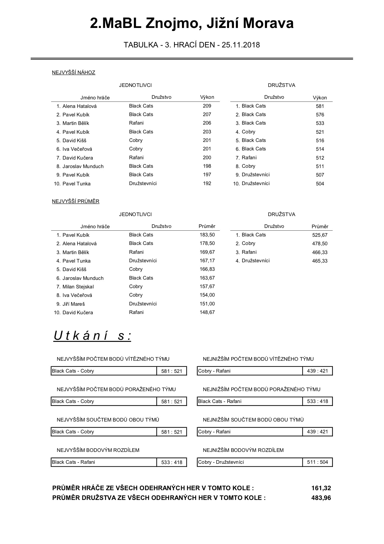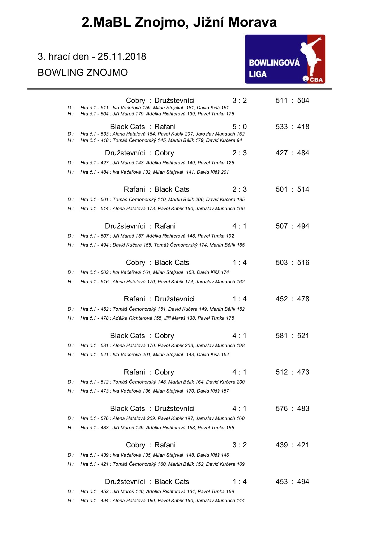 V neděli 25.listopadu odehrála družstva 2. Městské amatérské bowlingové ligy poslední kolo podzimní části ročníku 2018/2019. Jeho výsledky naleznete v článku.