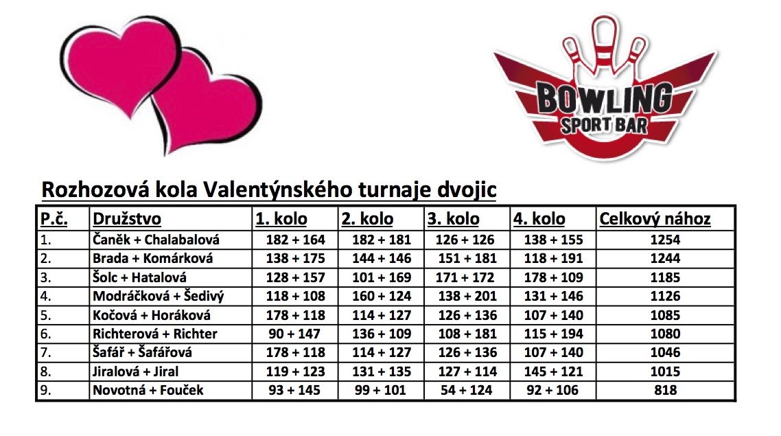 Valentýnský turnaj - VÝSLEDKY!!!
